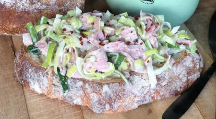 - 1 prei gewassen, gehalveerd en fijngesneden