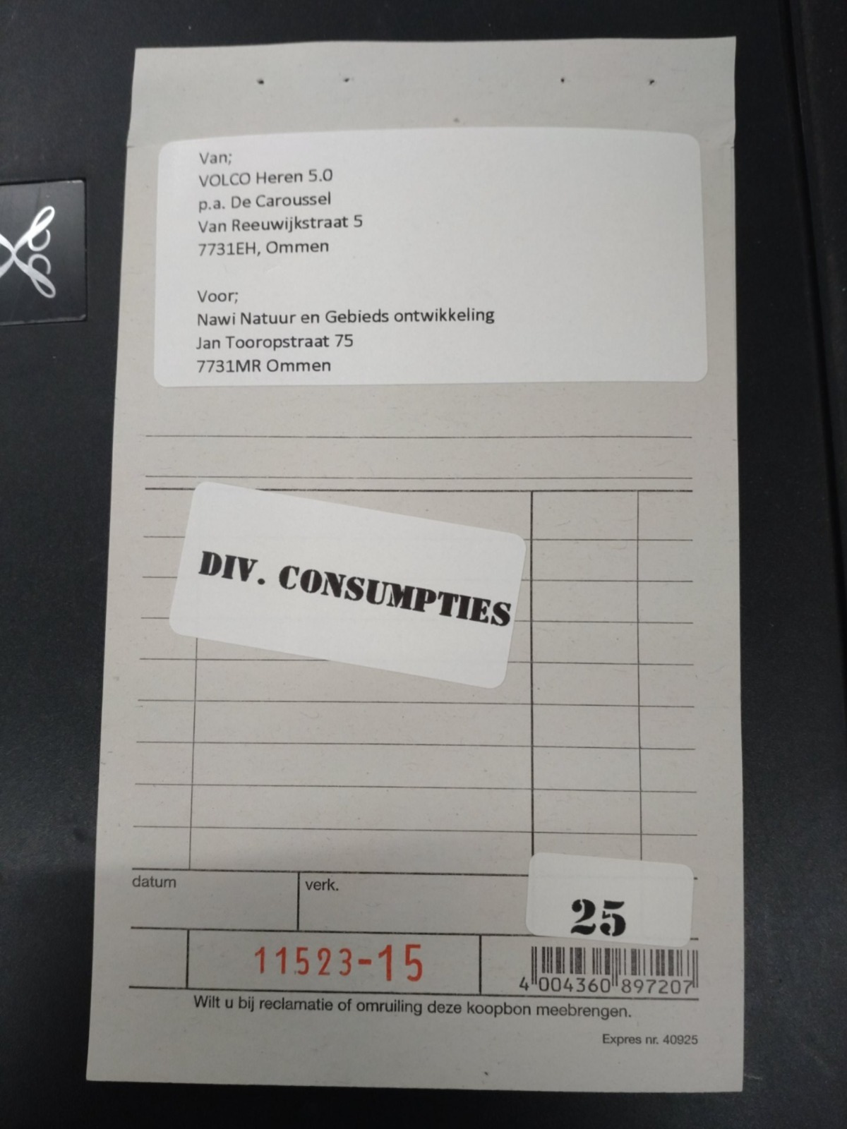 - hij al zijn bonnetjes bewaard?